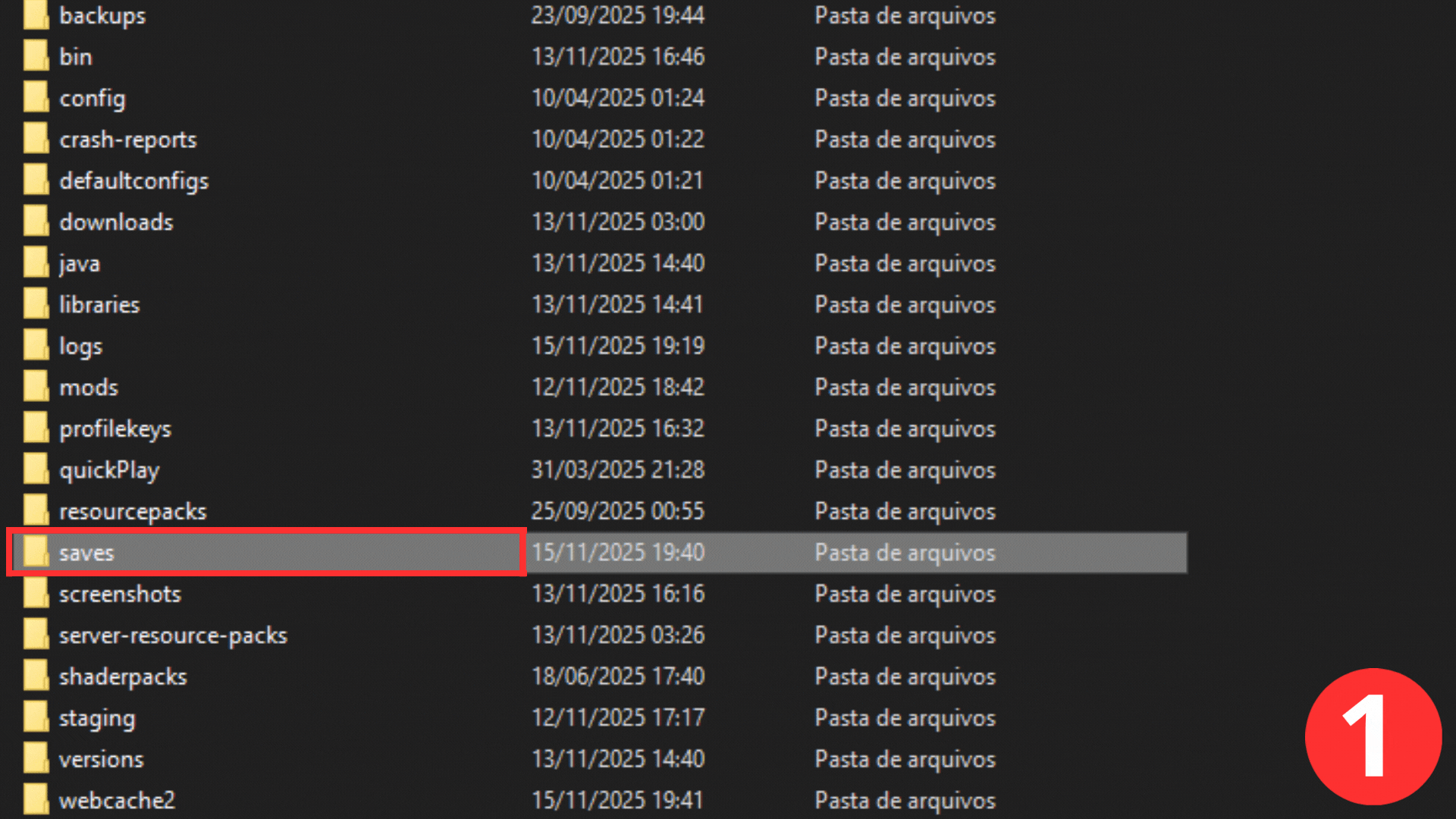 - Entre na pasta chamada: .minecraft e localize a pasta “saves”;