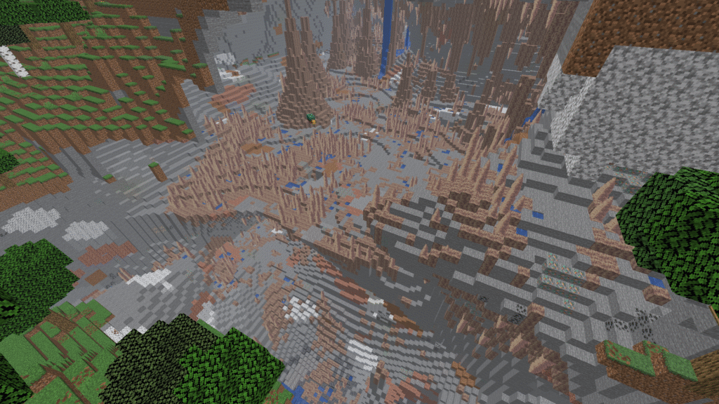 Se você gosta de uma aventura nas cavernas, essa seed pode ser um desafio e tanto! Nela, você nascerá próximo a uma montanha OCA, que dentro terá inúmeras estalactites. Construir uma base nela será uma aventura.