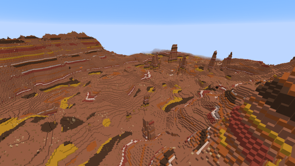 Nessa seed, você nascerá em um bioma de mesa, com poucos recursos. Atrás do spawn, haverá um vale com uma vila, sua única esperança no meio desse deserto de cores. Topa o desafio de sobreviver aqui?